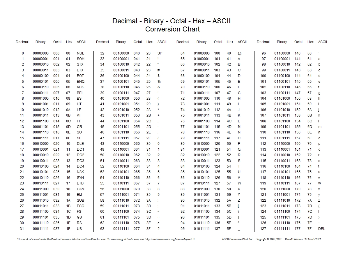 The ASCII (American Standard Code for Information Interchange) table is a character encoding standard used in computing and communication to represent text and control characters as binary numbers. In the ASCII table, each character is assigned a unique numerical value between 0 and 127, which corresponds to its binary representation.